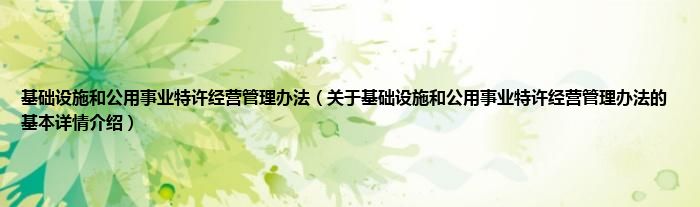 本文关于基础设施和公用事业特许经营管理办法的基本详情介绍就讲解完毕,希望对大家有所帮助。