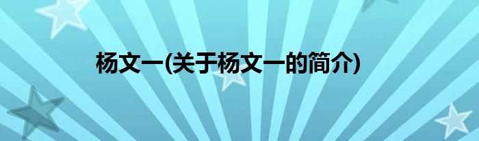 本文关于杨文一的简介就讲解完毕,希望对大家有所帮助。