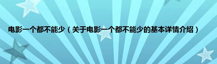 本文关于电影一个都不能少的基本详情介绍就讲解完毕,希望对大家有所帮助。