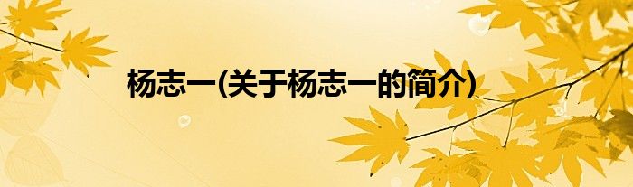 本文关于杨志一的简介就讲解完毕,希望对大家有所帮助。
