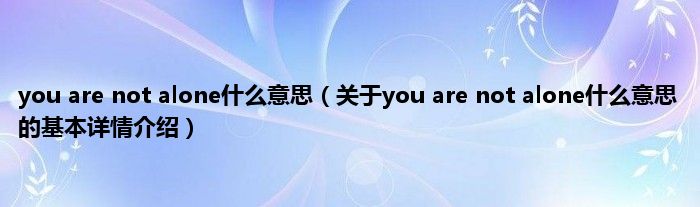 本文关于you are not alone什么意思的基本详情介绍就讲解完毕,希望对大家有所帮助。