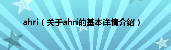 本文关于ahri的基本详情介绍就讲解完毕,希望对大家有所帮助。