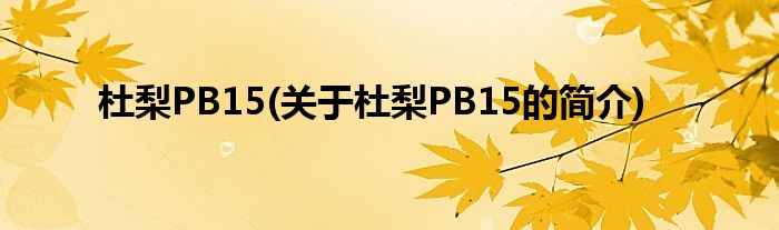 本文关于杜梨PB15的简介就讲解完毕,希望对大家有所帮助。