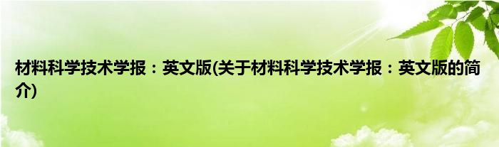本文关于材料科学技术学报:英文版的简介就讲解完毕,希望对大家有所帮助。