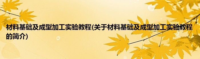 本文关于材料基础及成型加工实验教程的简介就讲解完毕,希望对大家有所帮助。