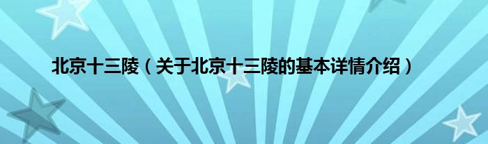 本文关于北京十三陵的基本详情介绍就讲解完毕,希望对大家有所帮助。