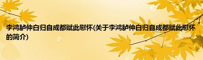 李鸿胪仲白归自成都赋此慰怀(关于李鸿胪仲白归自成都赋此慰怀的简介)