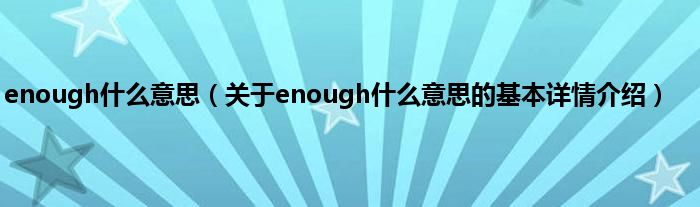 本文关于enough什么意思的基本详情介绍就讲解完毕,希望对大家有所帮助。