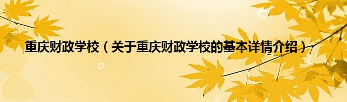 本文关于重庆财政学校的基本详情介绍就讲解完毕,希望对大家有所帮助。