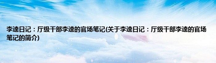 本文关于李逵日记:厅级干部李逵的官场笔记的简介就讲解完毕,希望对大家有所帮助。