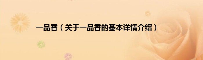 本文关于一品香的基本详情介绍就讲解完毕,希望对大家有所帮助。