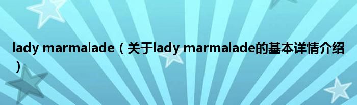 本文关于lady marmalade的基本详情介绍就讲解完毕,希望对大家有所帮助。