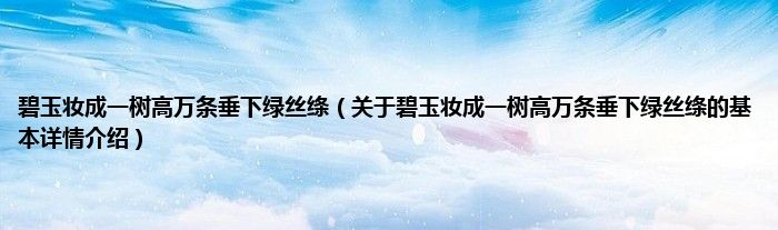 本文关于碧玉妆成一树高万条垂下绿丝绦的基本详情介绍就讲解完毕,希望对大家有所帮助。