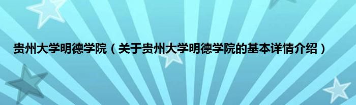 本文关于贵州大学明德学院的基本详情介绍就讲解完毕,希望对大家有所帮助。