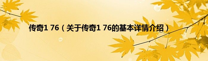 本文关于传奇1 76的基本详情介绍就讲解完毕,希望对大家有所帮助。