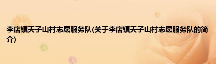 本文关于李店镇天子山村志愿服务队的简介就讲解完毕,希望对大家有所帮助。