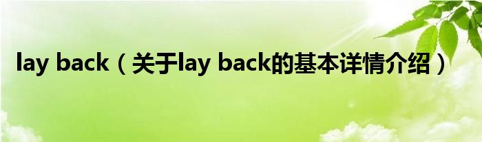 本文关于lay back的基本详情介绍就讲解完毕,希望对大家有所帮助。