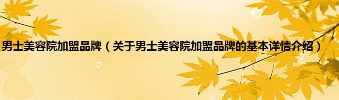 男士美容院加盟品牌(关于男士美容院加盟品牌的基本详情介绍)