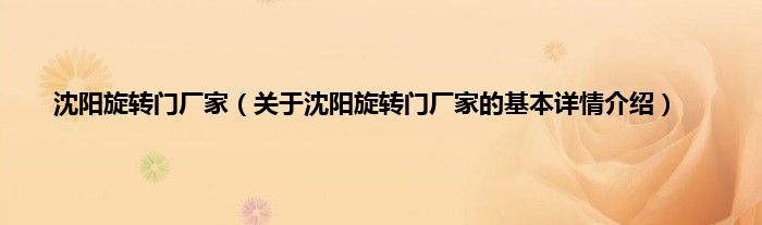 本文关于沈阳旋转门厂家的基本详情介绍就讲解完毕,希望对大家有所帮助。