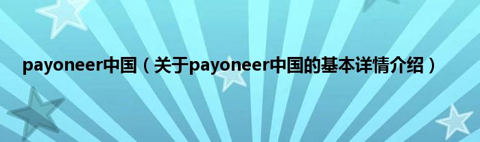 本文关于payoneer中国的基本详情介绍就讲解完毕,希望对大家有所帮助。