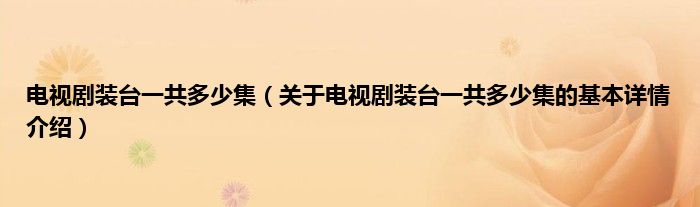 本文关于电视剧装台一共多少集的基本详情介绍就讲解完毕,希望对大家有所帮助。