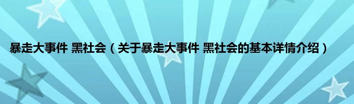本文关于暴走大事件 黑社会的基本详情介绍就讲解完毕,希望对大家有所帮助。