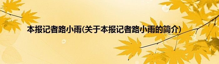 本文关于本报记者路小雨的简介就讲解完毕,希望对大家有所帮助。