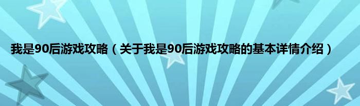 本文关于我是90后游戏攻略的基本详情介绍就讲解完毕,希望对大家有所帮助。