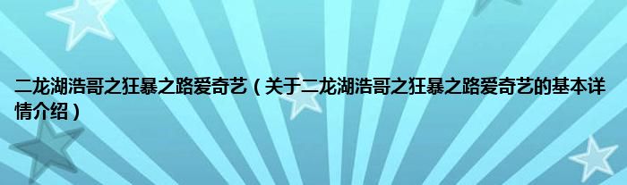 本文关于二龙湖浩哥之狂暴之路爱奇艺的基本详情介绍就讲解完毕,希望对大家有所帮助。