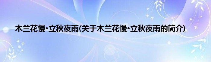 本文关于木兰花慢·立秋夜雨的简介就讲解完毕,希望对大家有所帮助。