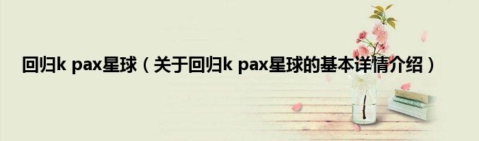 本文关于回归k pax星球的基本详情介绍就讲解完毕,希望对大家有所帮助。