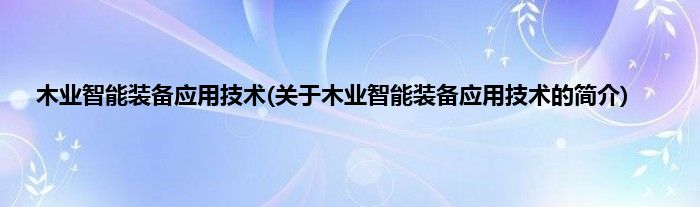 本文关于木业智能装备应用技术的简介就讲解完毕,希望对大家有所帮助。