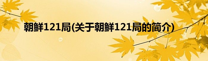 本文关于朝鲜121局的简介就讲解完毕,希望对大家有所帮助。