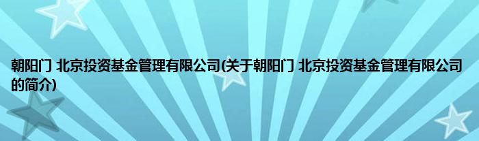 本文关于朝阳门 北京投资基金管理有限公司的简介就讲解完毕,希望对大家有所帮助。