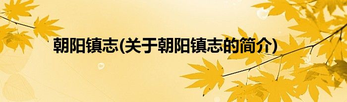 本文关于朝阳镇志的简介就讲解完毕,希望对大家有所帮助。