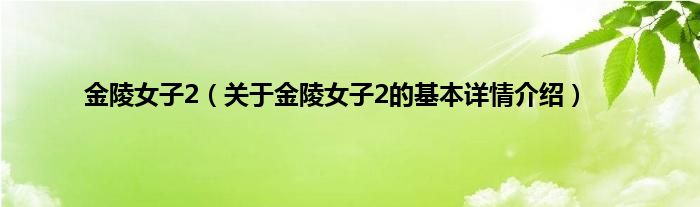 本文关于金陵女子2的基本详情介绍就讲解完毕,希望对大家有所帮助。