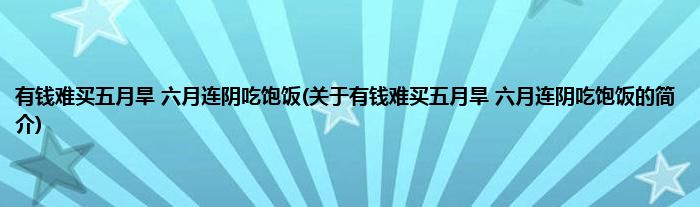 本文关于有钱难买五月旱,六月连阴吃饱饭的简介就讲解完毕,希望对大家有所帮助。