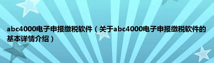 本文关于abc4000电子申报缴税软件的基本详情介绍就讲解完毕,希望对大家有所帮助。