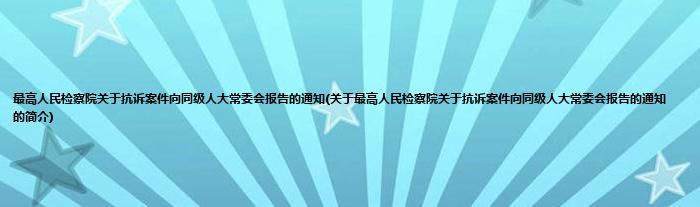 最高人民检察院关于抗诉案件向同级人大常委会报告的通知(关于最高人民检察院关于抗诉案件向同级人大常委会报告的通知的简介)