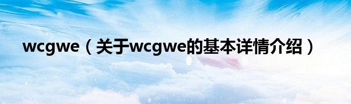 本文关于wcgwe的基本详情介绍就讲解完毕,希望对大家有所帮助。