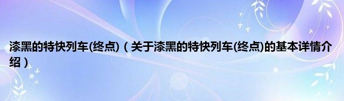 本文关于漆黑的特快列车(终点)的基本详情介绍就讲解完毕,希望对大家有所帮助。