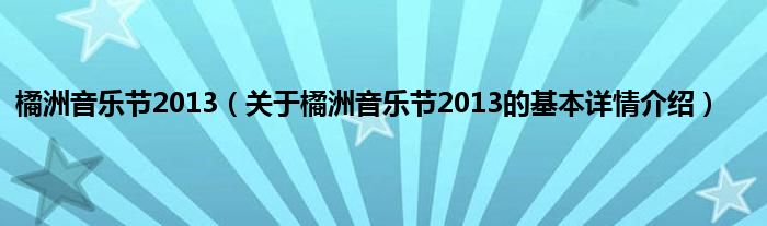本文关于橘洲音乐节2013的基本详情介绍就讲解完毕,希望对大家有所帮助。