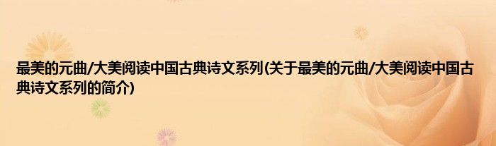 本文关于最美的元曲/大美阅读中国古典诗文系列的简介就讲解完毕,希望对大家有所帮助。