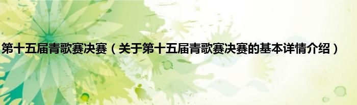 本文关于第十五届青歌赛决赛的基本详情介绍就讲解完毕,希望对大家有所帮助。