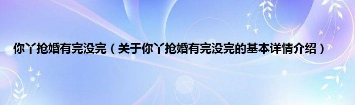 本文关于你丫抢婚有完没完的基本详情介绍就讲解完毕,希望对大家有所帮助。