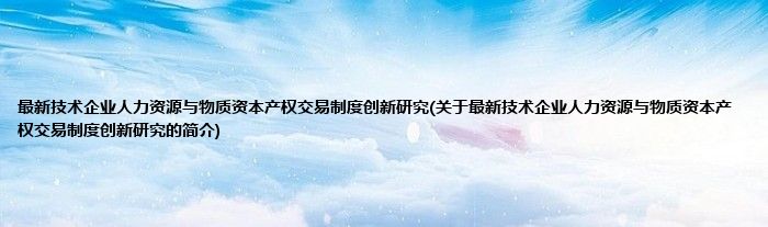 大家好,最新技术企业人力资源与物质资本产权交易制度创新研究,关于最新技术企业人力资源与物质资本产权交易制度创新研究的简介很多人还不知道,现在让我们一起来看看吧!
