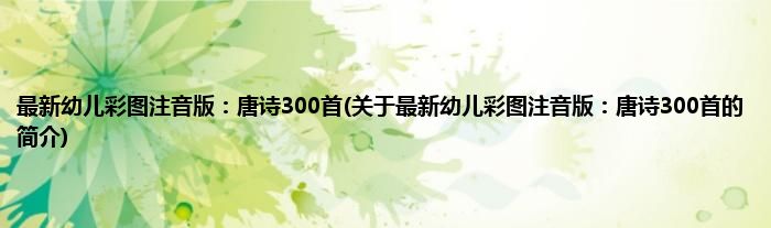 本文关于最新幼儿彩图注音版:唐诗300首的简介就讲解完毕,希望对大家有所帮助。