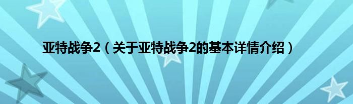 本文关于亚特战争2的基本详情介绍就讲解完毕,希望对大家有所帮助。