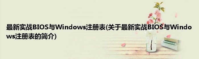 大家好,最新实战BIOS与Windows注册表,关于最新实战BIOS与Windows注册表的简介很多人还不知道,现在让我们一起来看看吧!