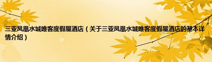 本文关于三亚凤凰水城唯客度假屋酒店的基本详情介绍就讲解完毕,希望对大家有所帮助。